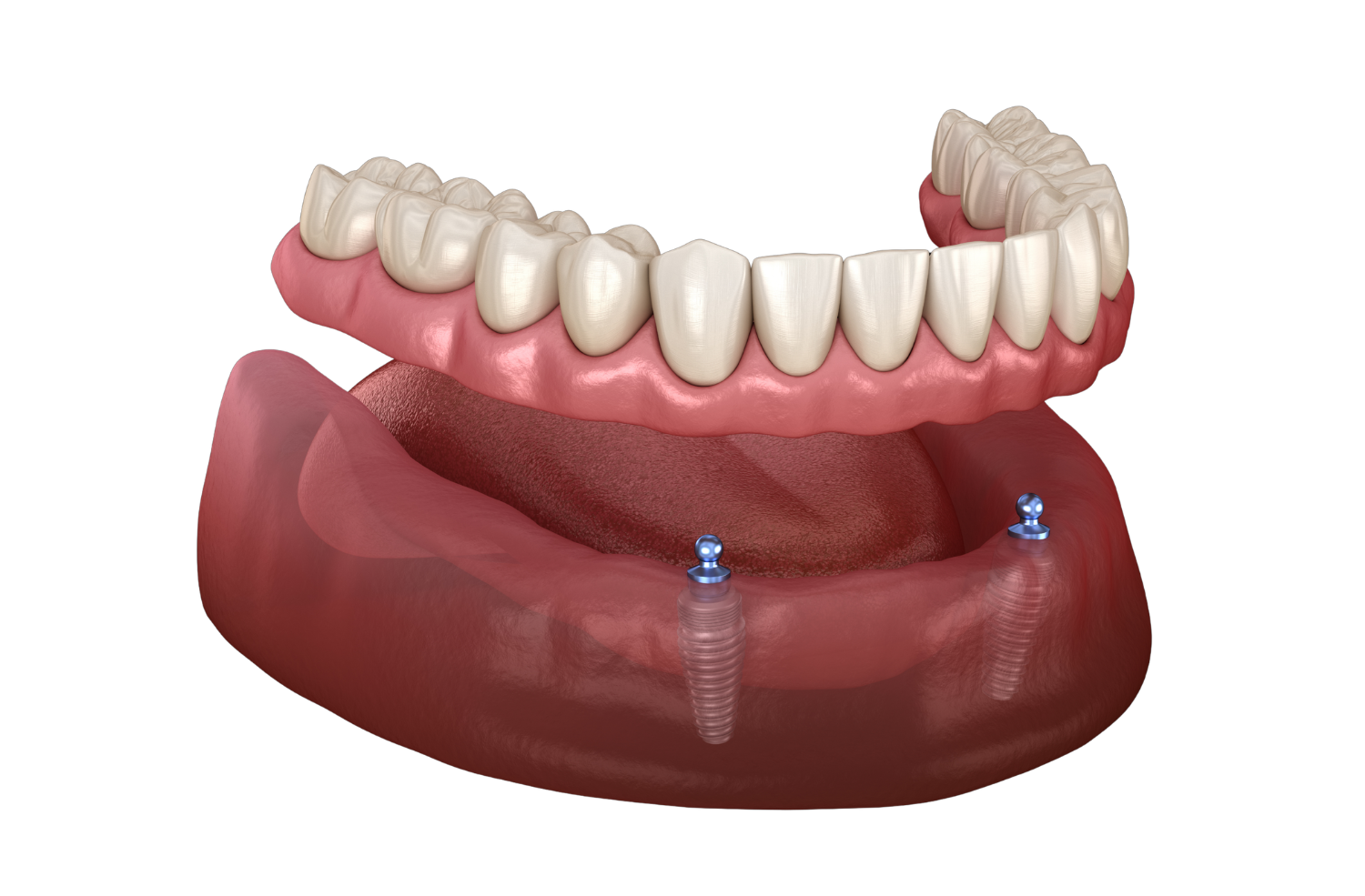 Implant-supported dentures use small, medical-grade titanium posts — placed into your jawbone by a dental surgeon — as a secure foundation for your custom denture. Once the implants have fully integrated with your bone, your Berlanga denturist attaches your handcrafted denture directly to the implants.